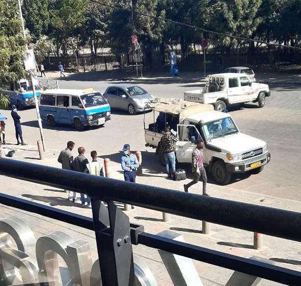 Pic 1: Morning of November 4, 2020, as police take Editor-in-Chief Bekalu Alamrew and Legal Representative Mr. Tewelde into custody.
